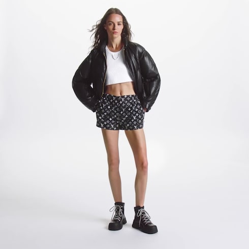 Estos pantalones cortos de estilo informal y deportivo lucen el estampado distintivo LV de la temporada. Confeccionados en tejido técnico, presentan un motivo Monogram con efecto estarcido. Incluyen una cintura elástica, cierre de mosquetón y dos bolsillos con cremallera en los laterales.