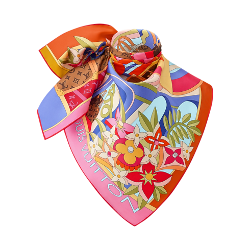 El pañuelo LV Wonderland es una mezcla de innovación e imaginación. Confeccionado en suntuosa seda, presenta un paisaje lúdico y futurista de flores Monogram en plena floración, combinadas con emblemáticos baúles y bolsos de Louis Vuitton, además de una inscripción de la Maison con efecto tridimensional. Gracias a sus colores radiantes y contrastes cautivadores, este versátil accesorio resulta un modelo muy llamativo.