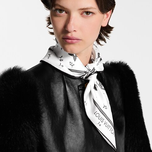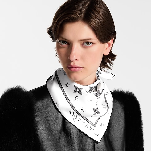 El pañuelo Monogram Romance 70, confeccionado en pura seda, luce un delicado patrón con un efecto óptico que recrea meticulosamente el encaje guipur. El diseño reinterpreta el icónico motivo Monogram de la Maison en una femenina versión floral. Este excepcional accesorio aportará un toque carismático a cualquier conjunto.