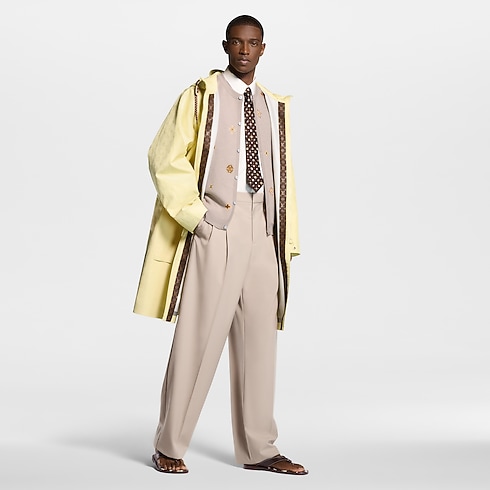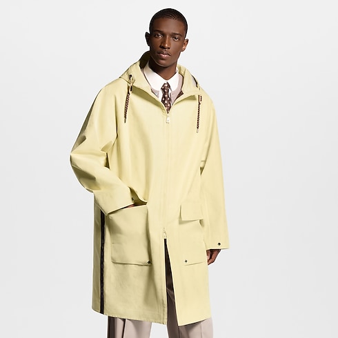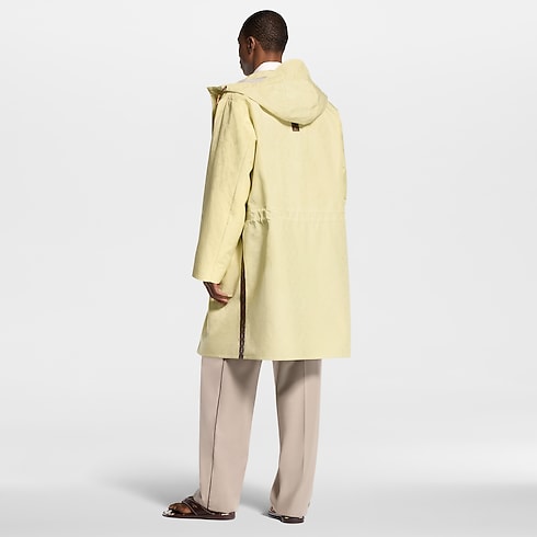 Esta parka ligera y deportiva en un delicado tono amarillo vainilla es perfecta para el armario primaveral. Confeccionada en tejido ripstop repelente al agua con un motivo Monogram realizado en Jacquard, presenta sutiles elementos emblemáticos, como cordones Damier con detalles en piel en la capucha con visera, una cinta Monogram Macassar en los laterales y la espalda, y remaches de flor Monogram en los bolsillos con solapa.