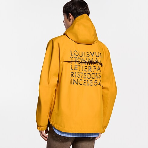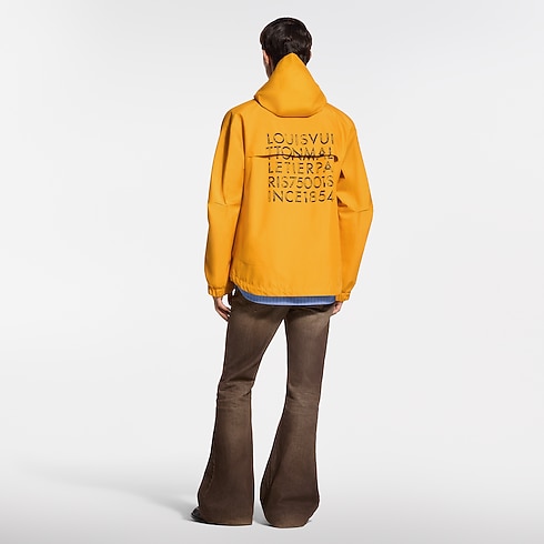 Esta parka técnica, vista en el desfile Primavera-Verano 2026, está inspirada en el elegante tema alpino de la temporada. Confeccionada en tejido ripstop de vibrante color amarillo, presenta un logotipo Louis Vuitton Paris dorado en el pecho, así como un gran logotipo LV estampado, que añade un toque gráfico a la espalda.