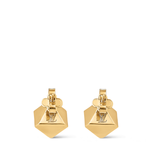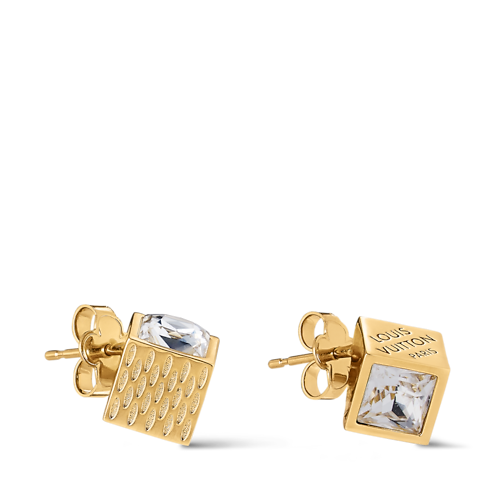 El exclusivo diseño de los pendientes LV Cube se inspira en el espíritu lúdico del Pateki, un juego de ingenio creado por Gaston Vuitton en 1932. Se componen de cubos de reluciente metal dorado adornados con deslumbrantes cristales y grabados que evocan la emblemática lona Damier. Un logotipo Louis Vuitton Paris aporta el toque distintivo de la Maison a estas llamativas y alegres piezas.