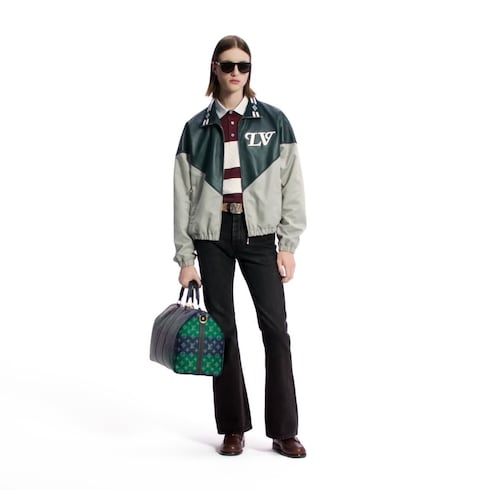 Este polo de manga larga, confeccionado en algodón orgánico de un intenso tono rojo burdeos, brinda un toque elegante a los conjuntos informales. Presenta bandas de piqué con motivo Damier y un cuello en popelín de algodón blanco a contraste. Se completa con detalles bordados, como un distintivo parche en el pecho, inspirado en los escudos universitarios, y unas flores Monogram con acabado dorado en el lado derecho del bajo.