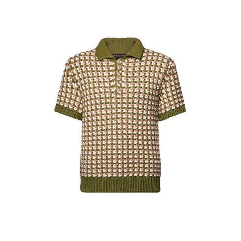 Este clásico polo visto en el desfile se renueva para la Colección Primavera-Verano 2026. Confeccionado en punto grueso de lana, presenta un motivo gráfico LV Stitch en refinados tonos verdes y beiges, así como un parche distintivo en piel en la parte trasera. Ideal para crear capas, puede lucirse sobre una camisa para lograr un refinado contraste de color y textura.