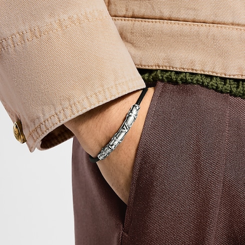 La pulsera LV Drift en piel, una oda a la sencillez refinada, demuestra la maestría artesanal de Louis Vuitton. La correa fina en piel negra se realza con cuentas deslizantes en tono plateado, adornadas con motivos florales que evocan un efecto guilloché. Este diseño de acabado envejecido y aspecto majestuoso es ideal tanto solo como combinado con otras pulseras.