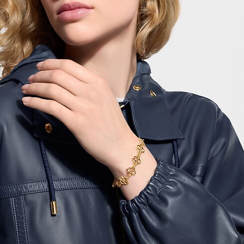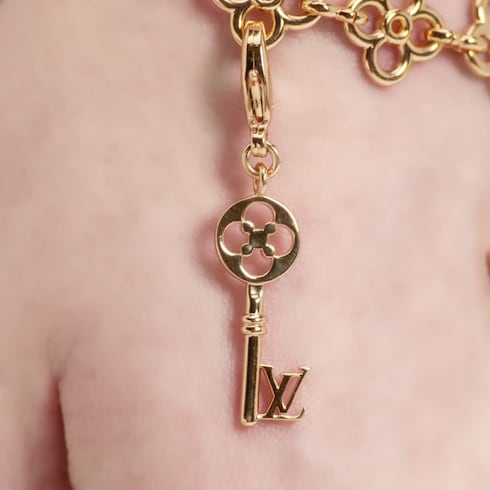 La pulsera LV Charms, elaborada en reluciente metal de color dorado, permite crear un look personalizado. Su elegante diseño presenta una cadena con flores Monogram, ideal para acoplar colgantes de la línea de accesorios de Louis Vuitton. Esta pieza única y llamativa es una forma original de lucir los motivos icónicos de la Maison.
