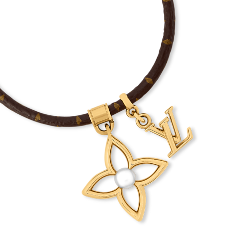La pulsera LV Pearly Flower refleja la esencia de Louis Vuitton con un toque único y elegante. Presenta una correa en piel, de la que penden dos adornos distintivos en metal de color dorado: un logotipo LV Initials y una flor Monogram calada, realzada con una brillante perla de resina. Este refinado accesorio, que puede llevarse solo o combinado con otros, brinda un aire moderno a cualquier look de diario.