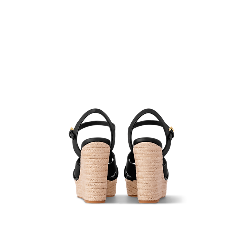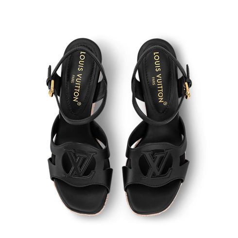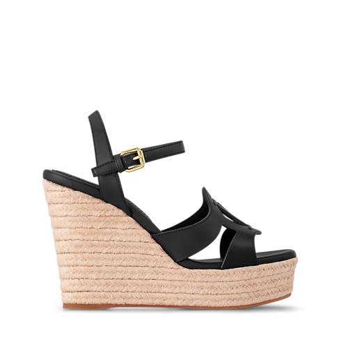 Esta sandalia de cuña LV Isola presenta una cómoda suela de esparto trenzado, que evoca la clásica alpargata. El diseño se distingue por un logotipo LV Circle troquelado en el empeine de piel de becerro lisa. Este elegante modelo incluye una pulsera con una hebilla de color dorado.
