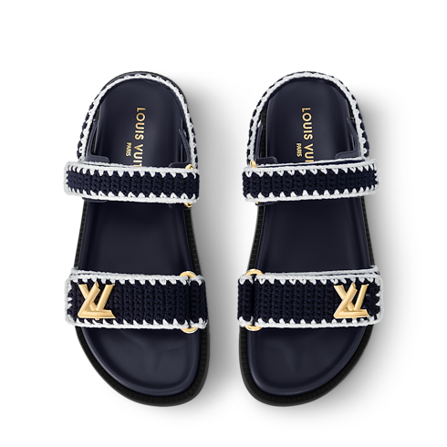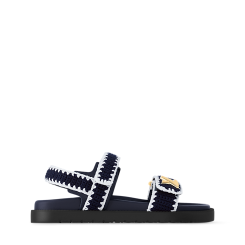 Esta sandalia LV Sunset Comfort está elaborada en algodón bicolor con técnica de ganchillo, que le aporta un intrincado toque artesanal. El diseño informal destaca por sus dos tiras de velcro, una de ellas con un adorno LV Twist de color dorado. Este cómodo modelo se completa con una plantilla anatómica acolchada y una ligera suela de goma.