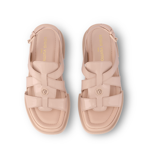 La sandalia Maya destaca por su gruesa plataforma, que aporta una gran comodidad. Esta temporada, el modelo se actualiza con un diseño en charol brillante. Luce refinados detalles tono sobre tono, como un adorno LV Circle en el empeine y una hebilla que permite ajustar la tira trasera.