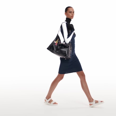 La sandalia plana LV Sunset Comfort, confeccionada en lona Monogram revestida, presenta llamativos elementos distintivos de la nueva Colección Louis Vuitton x Murakami. Su original diseño para diario luce una versión del icónico motivo Monogram en los tonos vivos del arcoíris, inspirado en la estética exuberante del artista japonés Takashi Murakami. El modelo incorpora un adorno LV Initials grande con detalles de color dorado en la tira delantera, así como un forro en piel de becerro, una plantilla anatómica y una cómoda suela de micro ligera.