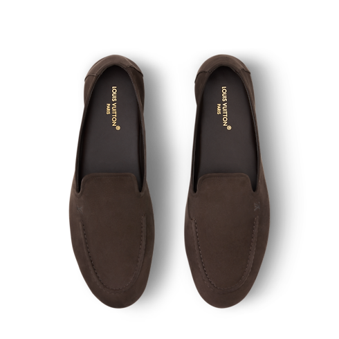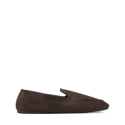 Este slipper LV Horizon destaca por su cómodo diseño, ligero y flexible. El empeine se ha confeccionado en suave piel nobuk de becerro, cuya textura aterciopelada presenta un sutil logotipo LV Initials en relieve. Este elegante modelo, imprescindible para viajar, incorpora la tradicional construcción sacchetto, reflejo de la maestría de la Maison en la elaboración de calzado.