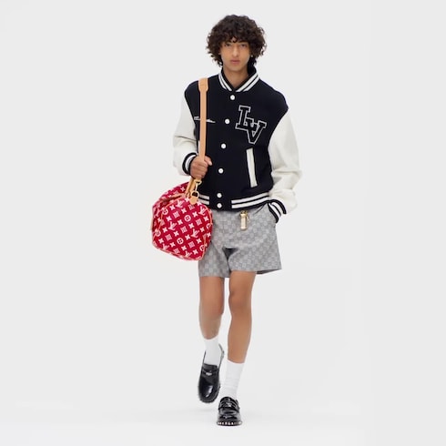 La bolsa de viaje Speedy P9 40 con bandolera, ideada por el director creativo Pharrell Williams, está elaborada en piel de becerro flexible y granulada de tacto muy suave. El estampado Monogram, realizado mediante una técnica de serigrafía de calidad superior, reproduce a la perfección el efecto casi difuminado que presenta este patrón sobre la lona. El modelo incluye un forro en lujosa piel de cordero.