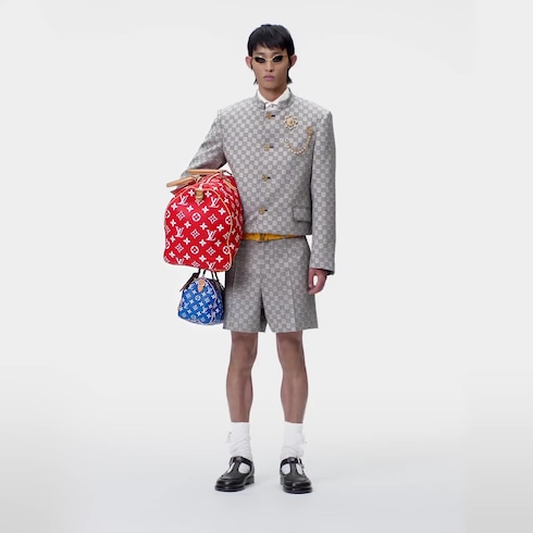 La bolsa de viaje Speedy P9 50 con bandolera es una reinterpretación de un modelo icónico creada por el director creativo Pharrell Williams. Se ha confeccionado en lujosa piel de becerro suave y flexible, en un llamativo color. El estampado, realizado mediante una compleja técnica de serigrafía, reproduce el aspecto difuminado y casi pintado a mano de este motivo sobra la lona.