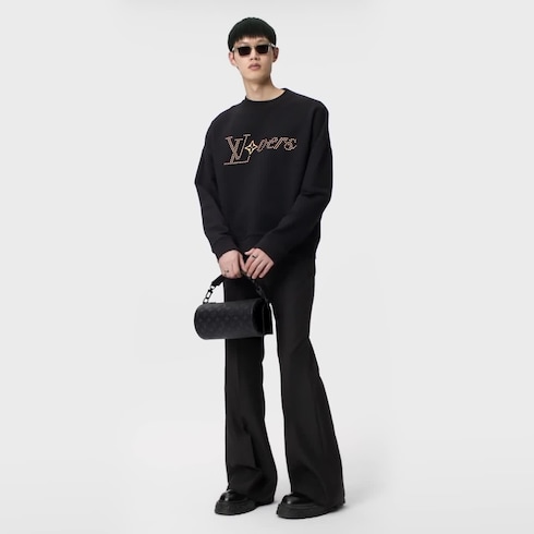 Esta cómoda sudadera negra de cuello redondo está confeccionada en algodón. Presenta el logotipo LV Vers del desfile Primavera-Verano 2024 en el pecho, reproducido con tachuelas y una flor Monogram bordada. Esta prenda de entretiempo, ideal para crear looks urbanos de estilo informal, combina a la perfección con pantalones vaqueros o chinos.
