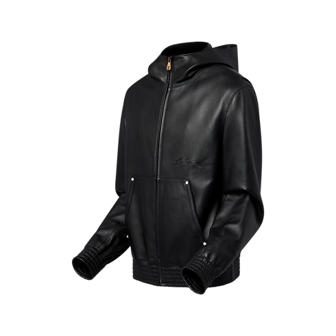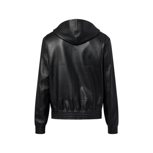 Esta elegante sudadera está elaborada en piel de cordero ligera y flexible. Incluye un sutil distintivo Louis Vuitton en bajorrelieve en el pecho y una etiqueta en piel con la inscripción «Marque L.Vuitton déposée» bajo la capucha. Esta moderna prenda, ideal para realzar looks informales, se completa con remaches nacarados y un acabado fruncido en el bajo y los puños.