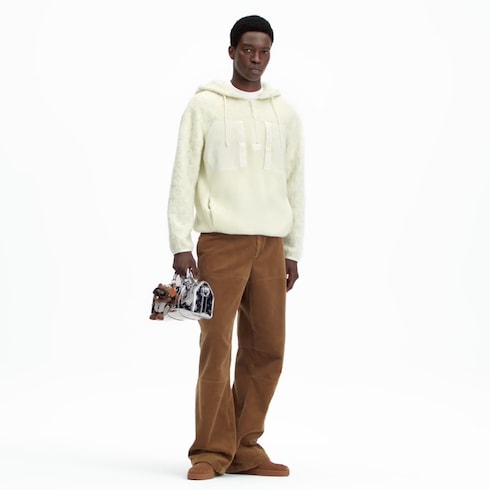 Inspirada en las excursiones por la montaña, esta cálida sudadera con capucha blanca es ideal como prenda técnica para exteriores y como elegante diseño distintivo para realzar los looks de diario. El suave y lujoso tejido polar de lana está adornado con un motivo Monogram texturizado en el fajín y las mangas. Los bolsillos de parche de nailon con cremallera añaden un toque deportivo con el distintivo Vuitton en cursiva bordado en el bolsillo izquierdo.
