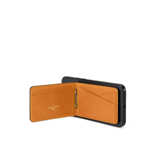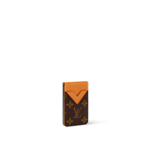 Este tarjetero Magnet, confeccionado en lona Monogram y piel natural, está diseñado para acoplarlo a cualquier modelo o funda de iPhone con tecnología MagSafe. Incluye dos ranuras para tarjetas en la parte delantera y tres interiores. La pieza puede utilizarse también como soporte, para mantener el teléfono móvil en posición vertical sobre cualquier superficie plana.