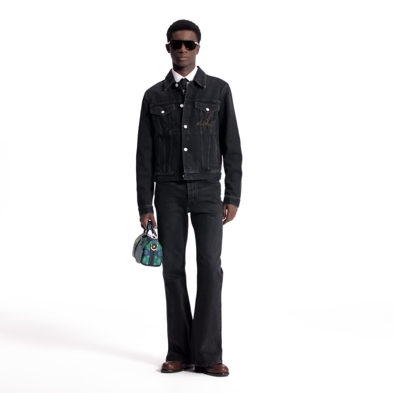 Este pantalón vaquero de corte acampanado, elaborado en exquisito tejido denim japonés, se realza con la destreza artesanal de Louis Vuitton. Ideal para completar cualquier look, combina un clásico acabado lavado en tono negro con una silueta contemporánea. Incluye un logotipo LV bordado con puntadas de color tabaco en el bolsillo trasero, así como parches distintivos en piel nobuk en el bolsillo relojero y la cintura.