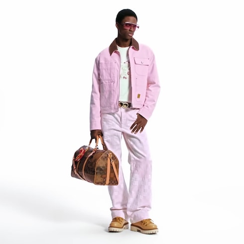 Este pantalón vaquero de estilo skater luce el icónico motivo Damoflage Sakura del desfile Otoño-Invierno 2025, realizado en Jacquard texturizado. Los tonos rosa cerezo están inspirados en la colaboración de esta temporada con el diseñador japonés Nigo. Esta prenda veraniega incluye un parche en piel nobuk con la inscripción «Marque L.Vuitton Déposée» en el bolsillo relojero y una etiqueta con el patrón Mini Damier en la parte trasera.