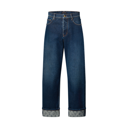 Este pantalón vaquero de color azul índigo intenso presenta un cómodo corte skate y es un básico imprescindible en cualquier armario casual. Luce un ligero efecto lavado, que le confiere un sutil aire desgastado, y bajos con vuelta adornados con un motivo Monogram tonal. Incluye elegantes detalles, como una etiqueta Damier en nobuk y piezas metálicas en tono dorado envejecido. Puede combinarse con la chaqueta a juego para crear un look coordinado.
