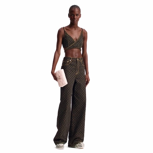 Este atemporal pantalón vaquero clásico, que presenta un diseño inspirado en los baúles de viaje de los archivos de la Maison, se realza para la temporada con un motivo integral Monogram estampado a láser. Este modelo de corte recto luce puntadas amarillas a contraste, que acentúan su aspecto vintage estructurado. Unas discretas trabillas de estilo carpenter en los bolsillos traseros evocan la estética utilitaria.