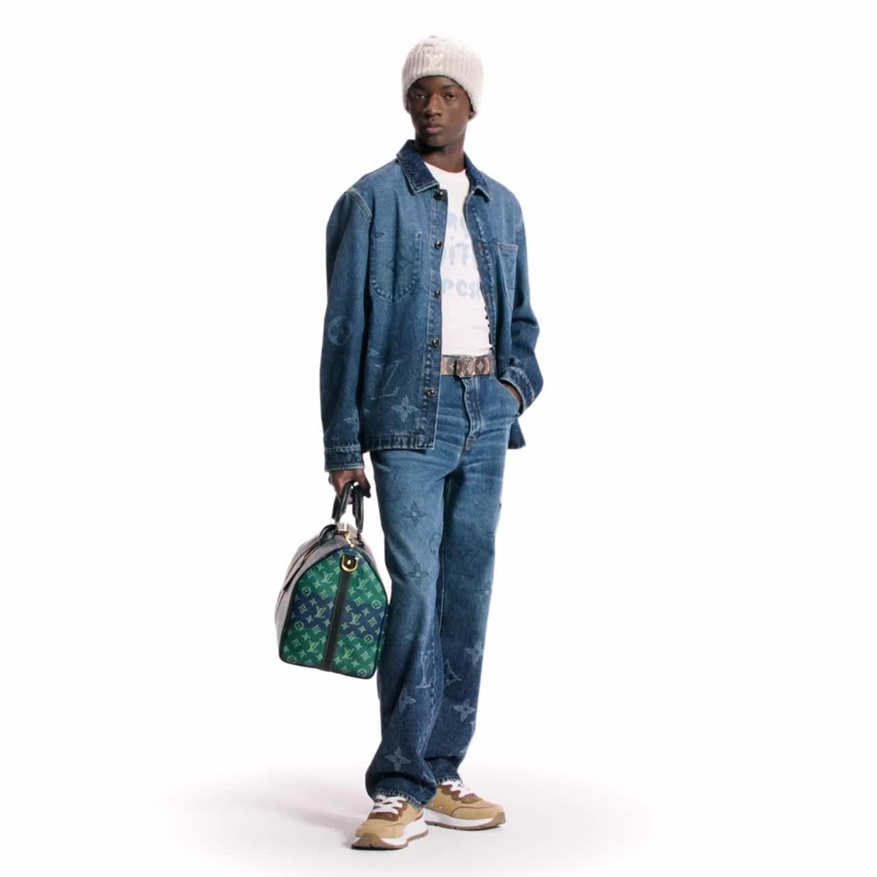 Este pantalón vaquero de algodón orgánico, que puede llevarse con la sobrecamisa a juego para crear un conjunto gráfico, presenta un corte amplio y un acabado lavado de estética vintage. Luce un motivo Monogram Seeds, con un elegante efecto degradado tonal, y una etiqueta en piel Damier con logotipo LV en relieve en la parte trasera. Esta prenda utilitaria se completa con bolsillos laterales y una trabilla portamartillos.
