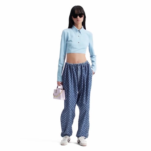 Este veraniego pantalón vaquero de estilo informal, confeccionado en el imprescindible tejido denim ligero de la temporada, se adorna con un icónico estampado Monogram. Este cómodo diseño de corte recto incluye una cintura elástica, que rinde homenaje a los modelos deportivos. Se completa con costuras laterales, que le aportan un toque estructurado.