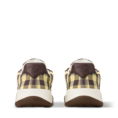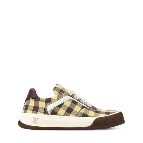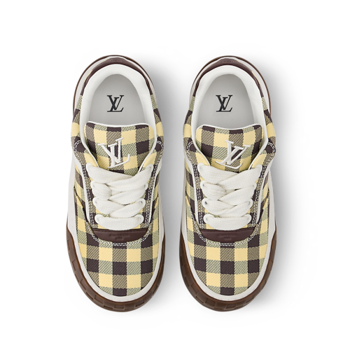 La zapatilla deportiva LV Tilted, confeccionada en una combinación de materiales, se distingue por un vistoso estampado de cuadros vichy, un motivo característico de la temporada. Inspirado en modelos vintage y en el calzado de skateboarding, esta pieza recibe su nombre por el logotipo LV Initials inclinado en la lengüeta y la suela, que evoca el movimiento del monopatín. Se completa con detalles distintivos, como el motivo Damier en la suela bicolor.
