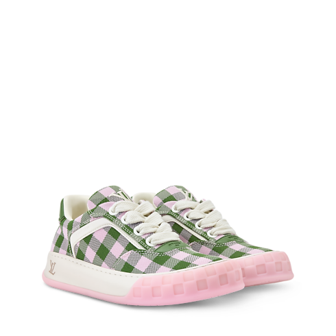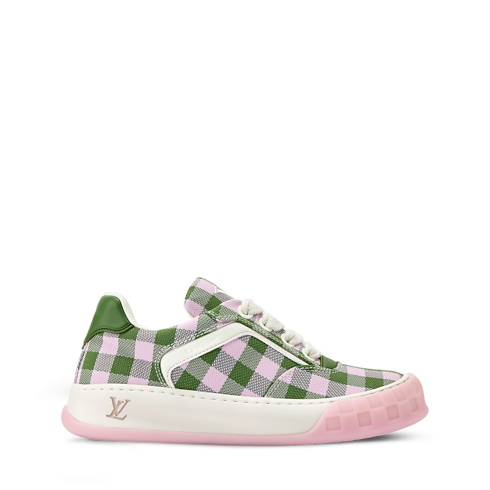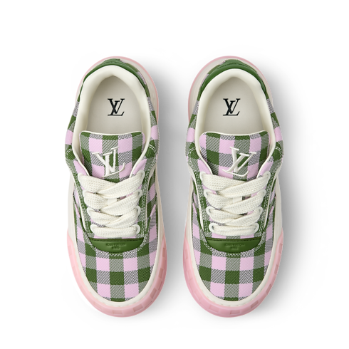 La zapatilla deportiva LV Tilted, confeccionada en una combinación de materiales, se distingue por un vistoso estampado de cuadros vichy, un motivo característico de la temporada. Inspirado en modelos vintage y en el calzado de skateboarding, esta pieza recibe su nombre por el logotipo LV Initials inclinado en la lengüeta y la suela, que evoca el movimiento del monopatín. Se completa con detalles distintivos, como el motivo Damier en la suela bicolor.