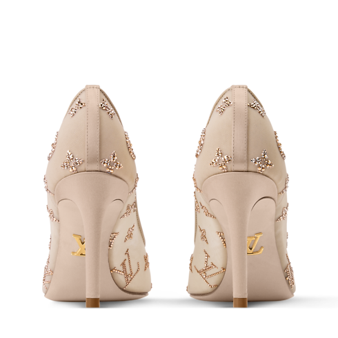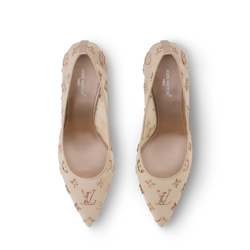 El zapato de salón Gala es un modelo elegante y atemporal confeccionado en malla translúcida, que deja entrever el pie. El material se adorna con brillantes cristales Swarovski™, que forman el emblemático motivo Monogram de la Maison. Este exquisito diseño, ideal para looks de noche, se completa con una femenina punta fina, un tacón alto y una fina suela en piel.