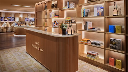 Le Café Louis Vuitton on the fourth floor of Louis Vuitton 57th Street NYC store is the Maison's first library café in the US. A cultural meeting place, where visitors can enjoy curated books and an innovative take on luxury snacking.